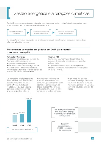 Em 2017, a empresa continuou a abordar projetos para a melhoria da eficiência energética e da