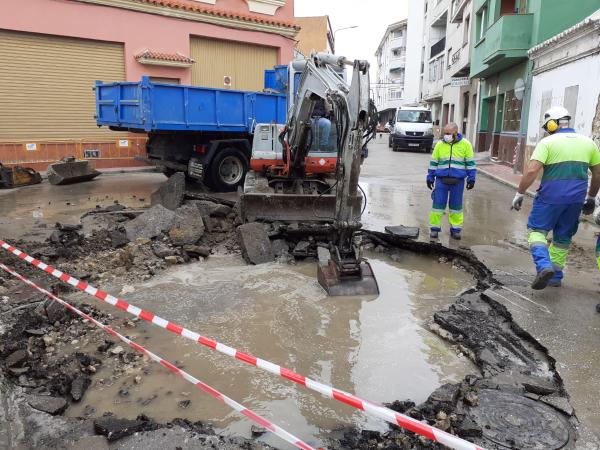 Aqualia trabaja en el arreglo de una rotura en la arteria de abastecimiento de agua de la C/ Colón, en La Línea