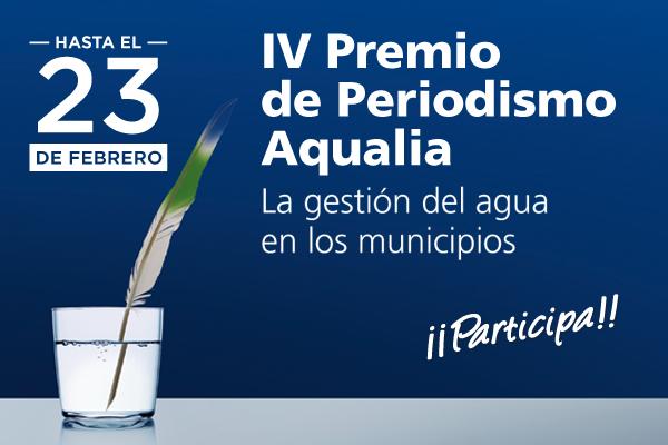 El plazo para presentar las candidaturas al IV Premio de Periodismo Aqualia permanecerá abierto hasta el 23 de febrero de 2020. La compañía amplía una semana más el periodo de admisión de candidaturas que optarán a un primer premio, de 3.000 euros y dos accésit, de 1.500 euros cada uno.